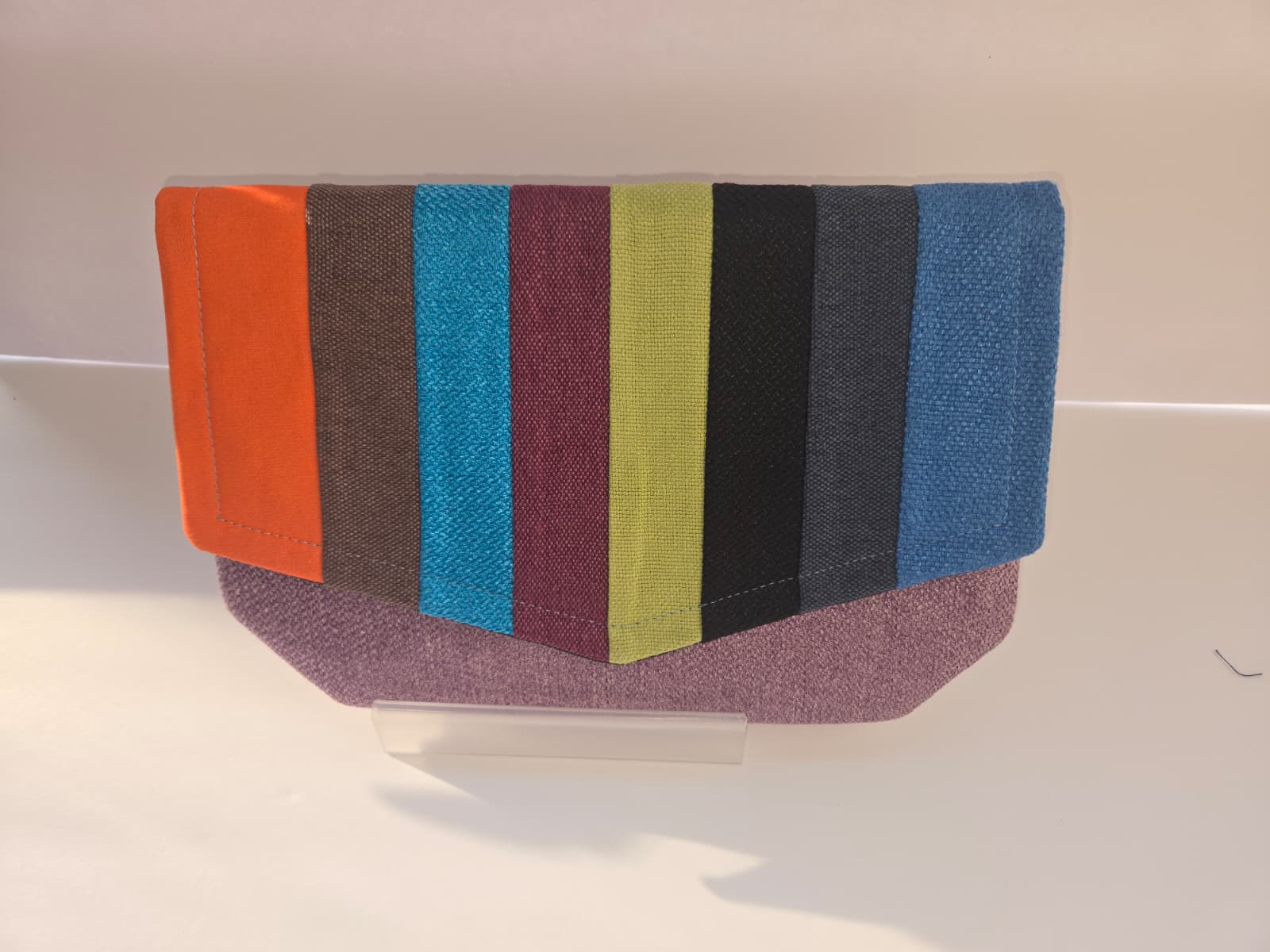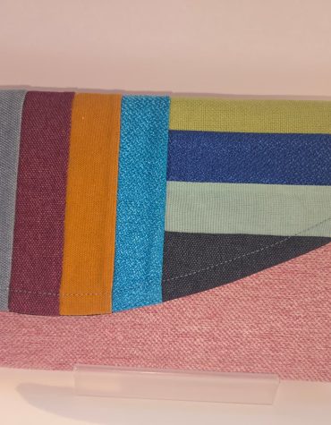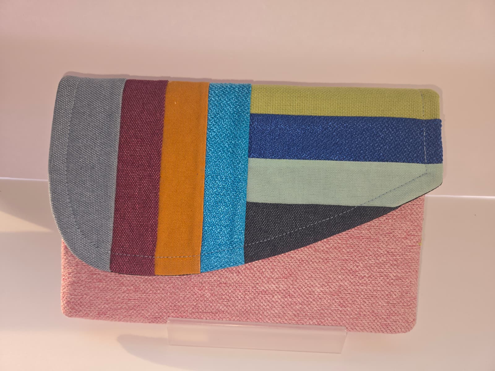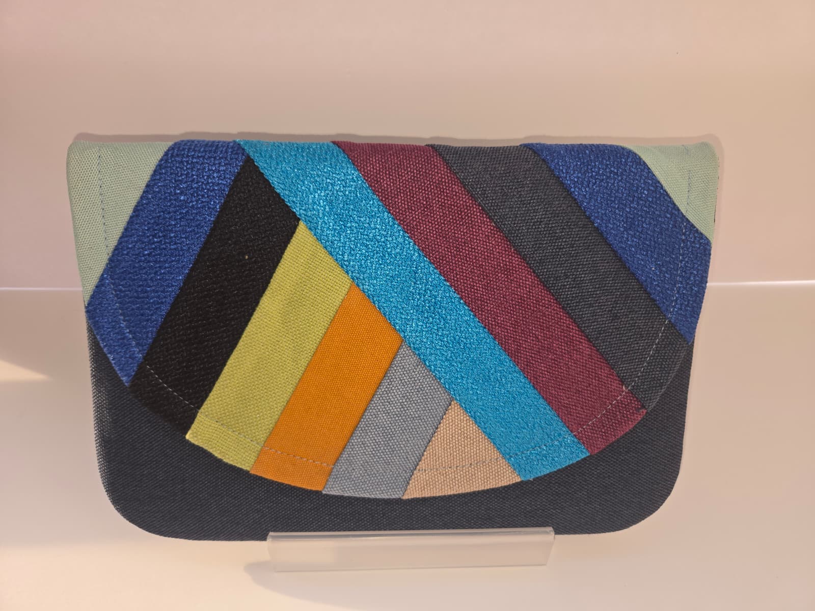 A stylish fabric clutch bag designed with bold vertical color panels, perfect for adding a pop of vibrance to any outfit. Compact yet chic, it’s ideal for both casual outings and special occasions.
